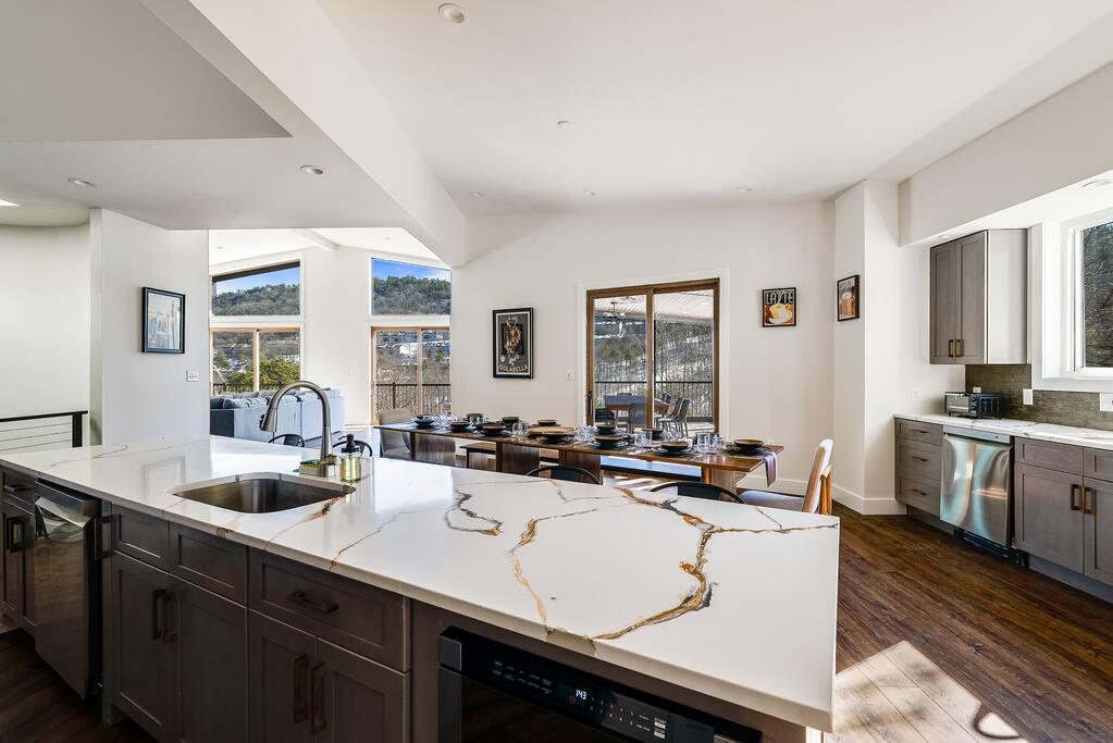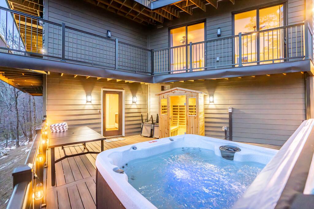 New listing! Welcome to Casador, a gorgeous new construction home in Massanutten with fantastic views of mountains and ski slopes. With 6 bedrooms and 5.5 bathrooms, the house sleeps 16 comfortably! Relax in the hot tub or sauna, then dine at the oversized outdoor table or sip wine in the screened-in porch. Inside is an open floor plan with multiple kitchens, and game room with pool table, ping pong, and more. Managed by New School Hosting- check my profile for more reviews. Plus, pet friendly!